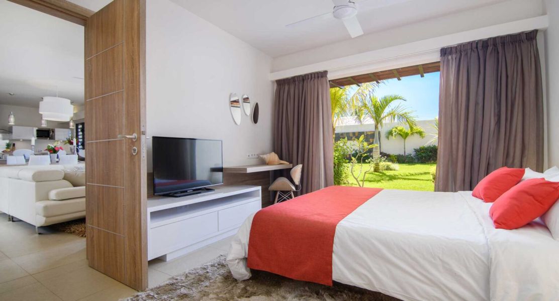 Grand Baie: 3.6 km / 9-minute drive. Supermarkets, bakeries, bazaar, local vendors, shopping malls, restaurants, local shops, diverse dining, banks, medical facilities.: