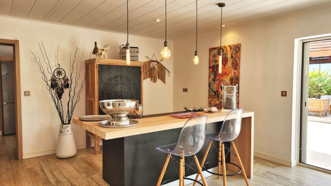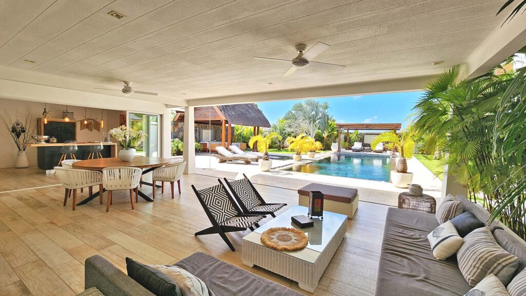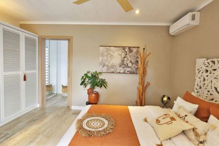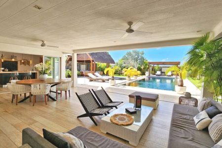 Perfect for a family getaway or a group of friends, the Clos du Littoral four-bedroom villa offers a private and luxurious retreat. This spacious villa is a five-bedroom model that is rented with one bedroom closed off, ensuring you have all the same features and amenities.