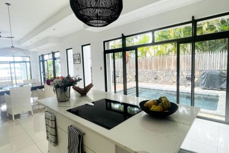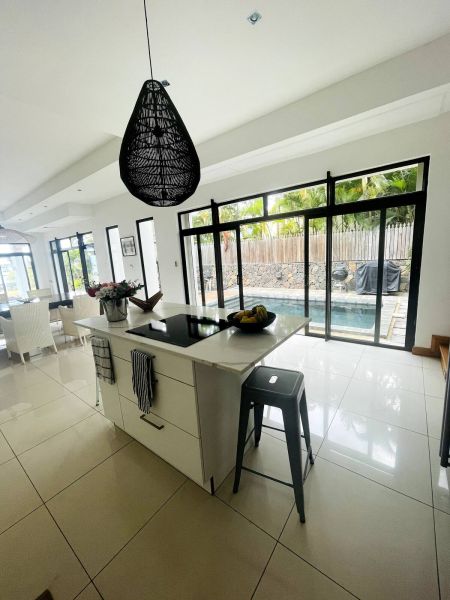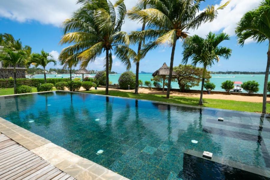 Imagine waking up to the gentle sound of waves and stepping directly onto a pristine beach. This spacious, secure 4-bedroom villa in Grand Bay offers the ultimate beachfront escape.