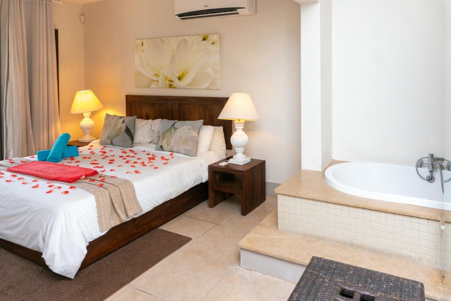 Escape to paradise at Bel Azur Villas, where stunning turquoise lagoons meet golden sandy beaches. Nestled on the serene northern coast of Trou aux Biches, our two exclusive villas offer the perfect blend of privacy and luxury. Each villa features a fully equipped kitchen, spacious en-suite bedrooms, and a private veranda with barbecue facilities—ideal for al fresco dining. Enjoy the seclusion of your own private garden and swimming pool, while still having direct access to the shared beachfront facilities, including a breathtaking communal infinity pool. Bel Azur Villas is your tranquil home away from home, perfectly positioned to explore the charming villages, vibrant life of Grand Bay, and historic sights of Port Louis.