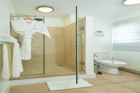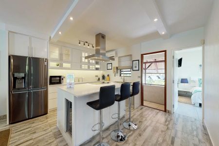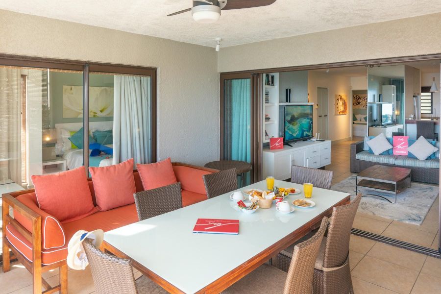 The residence comprises eight well-appointed suites. Each suite includes a fully equipped kitchen, en-suite bedrooms, and a private veranda with barbecue facilities. All suites offer views of the common infinity pool and lush gardens, with the ocean providing a beautiful backdrop.