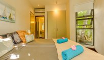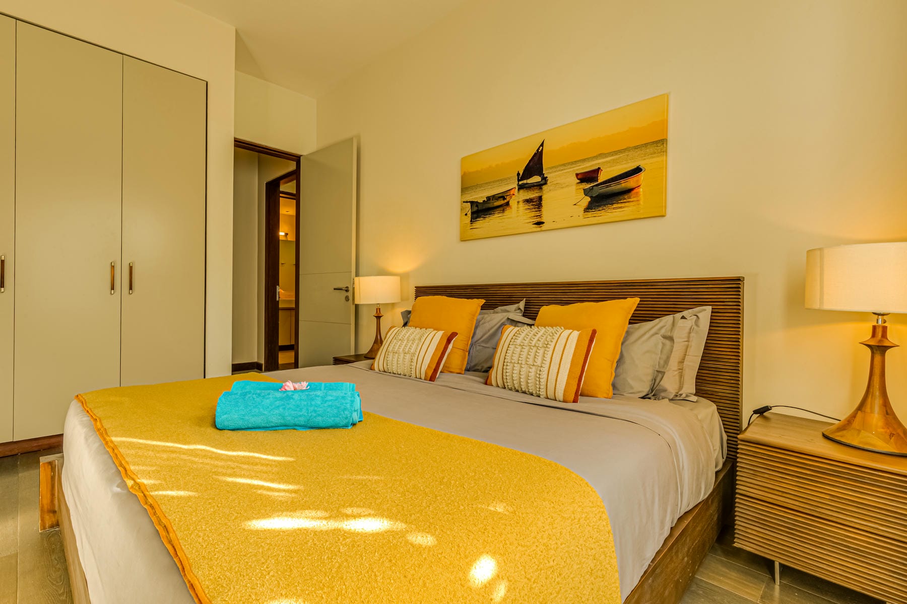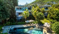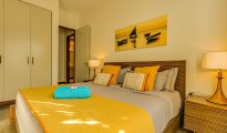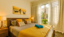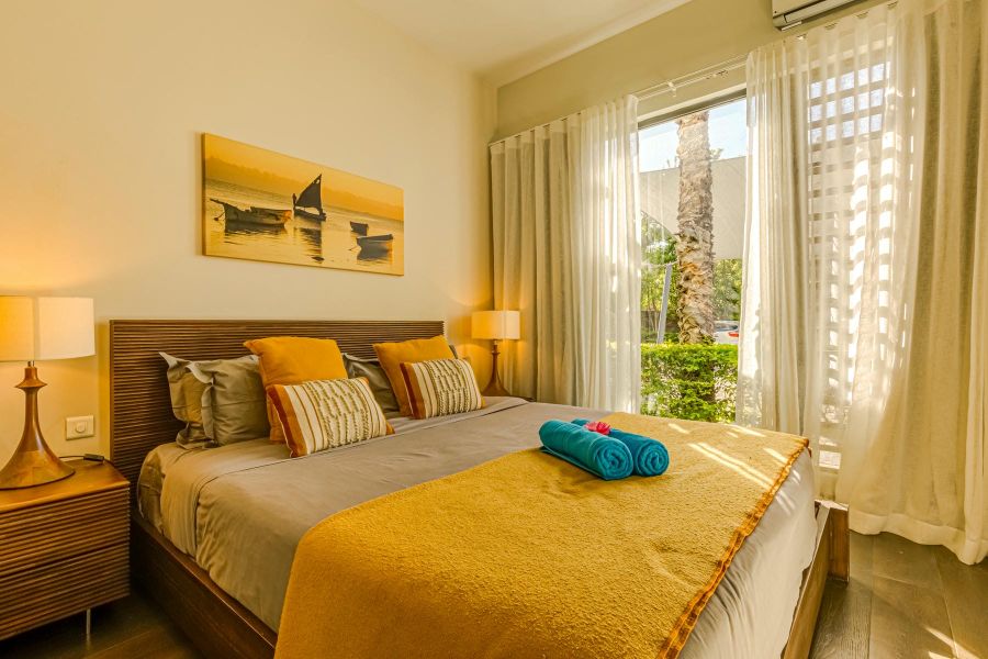 High-end beachfront apartments offer breathtaking views of the blue lagoon.