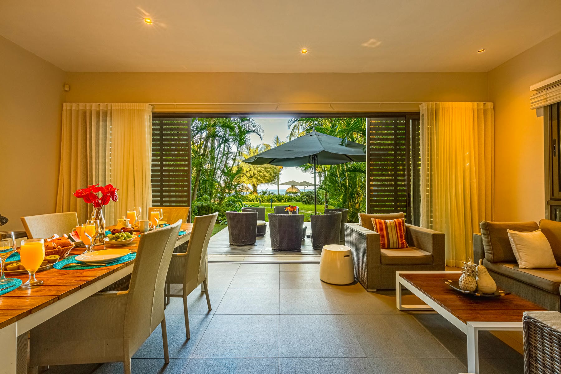 Seamless Indoor-Outdoor Living: Private terraces blend with lush tropical gardens.