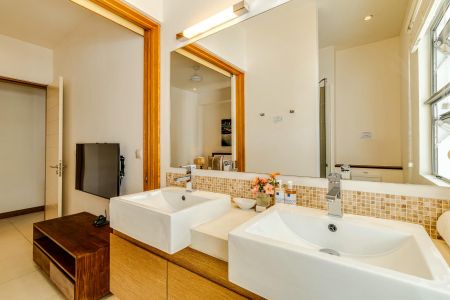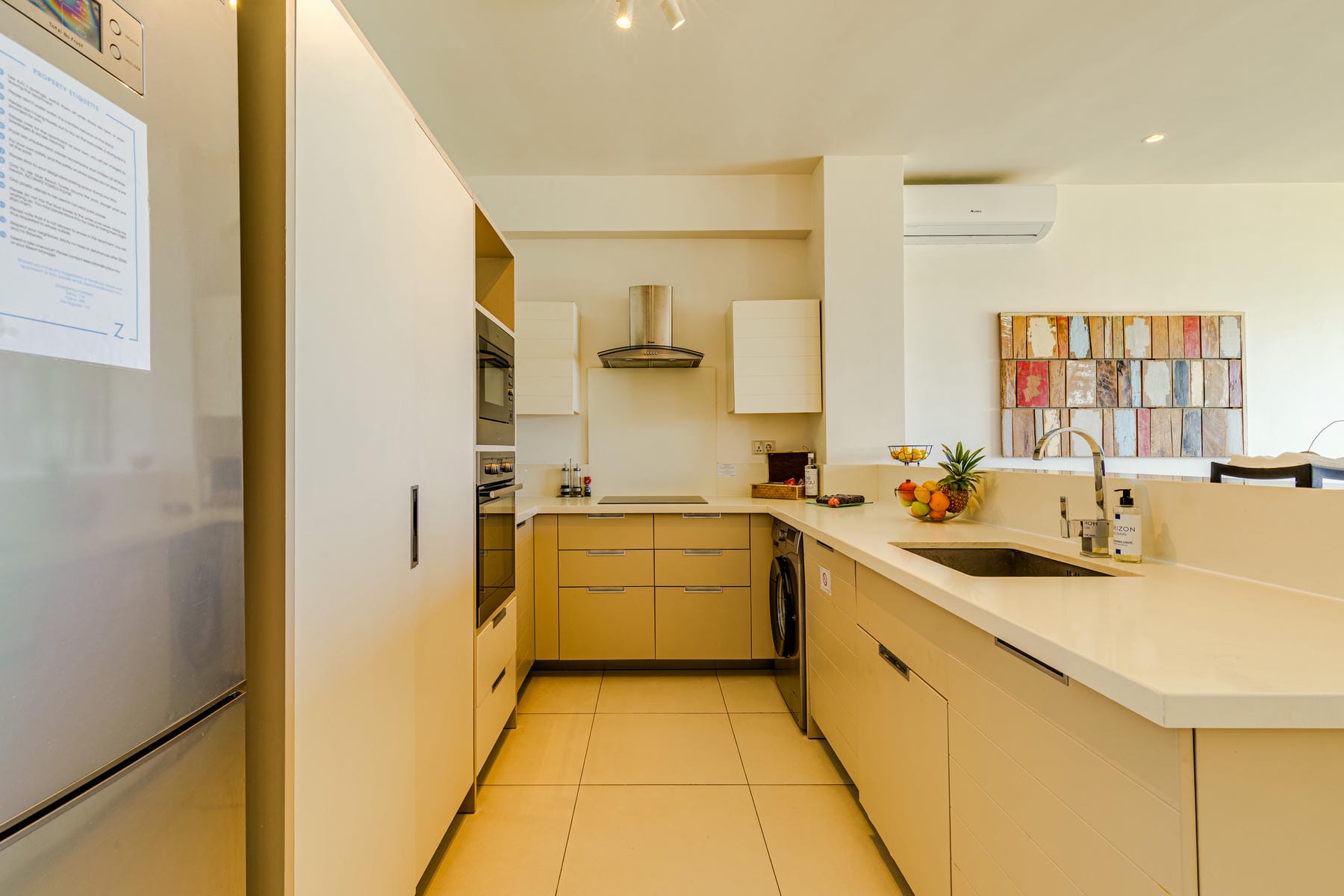 Experience unparalleled beachfront luxury at Cap Ouest Deluxe in Flic en Flac. This contemporary residence boasts sophisticated interiors and panoramic views of the Indian Ocean, ensuring a tranquil and comfortable stay. Guests benefit from a private pool and direct access to the beach, while the apartment's desirable location provides convenient access to local attractions, diverse culinary options, and the lively ambiance of one of Mauritius's most sought-after coastal towns.