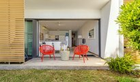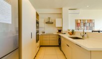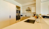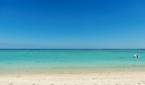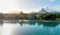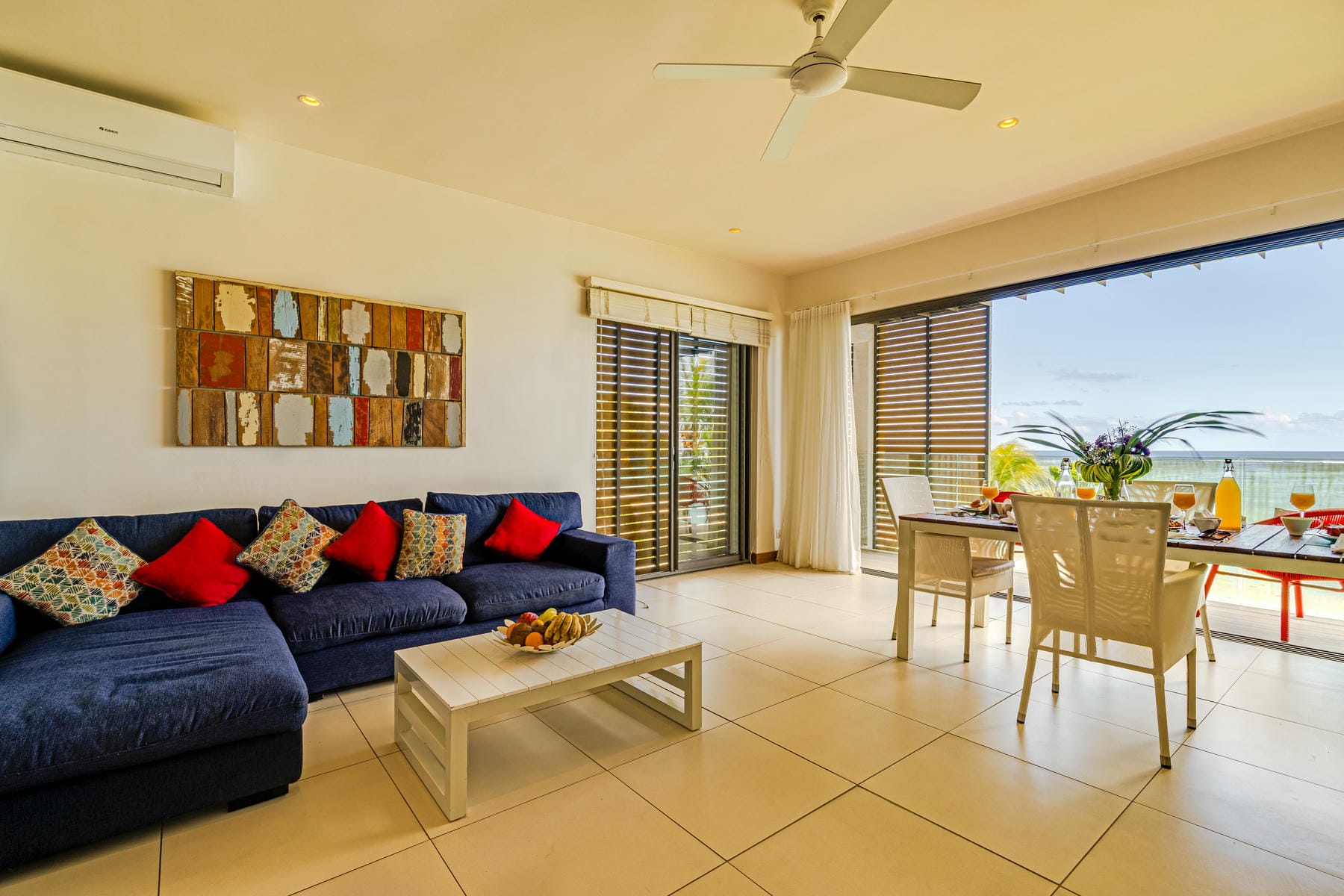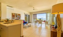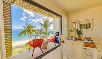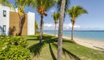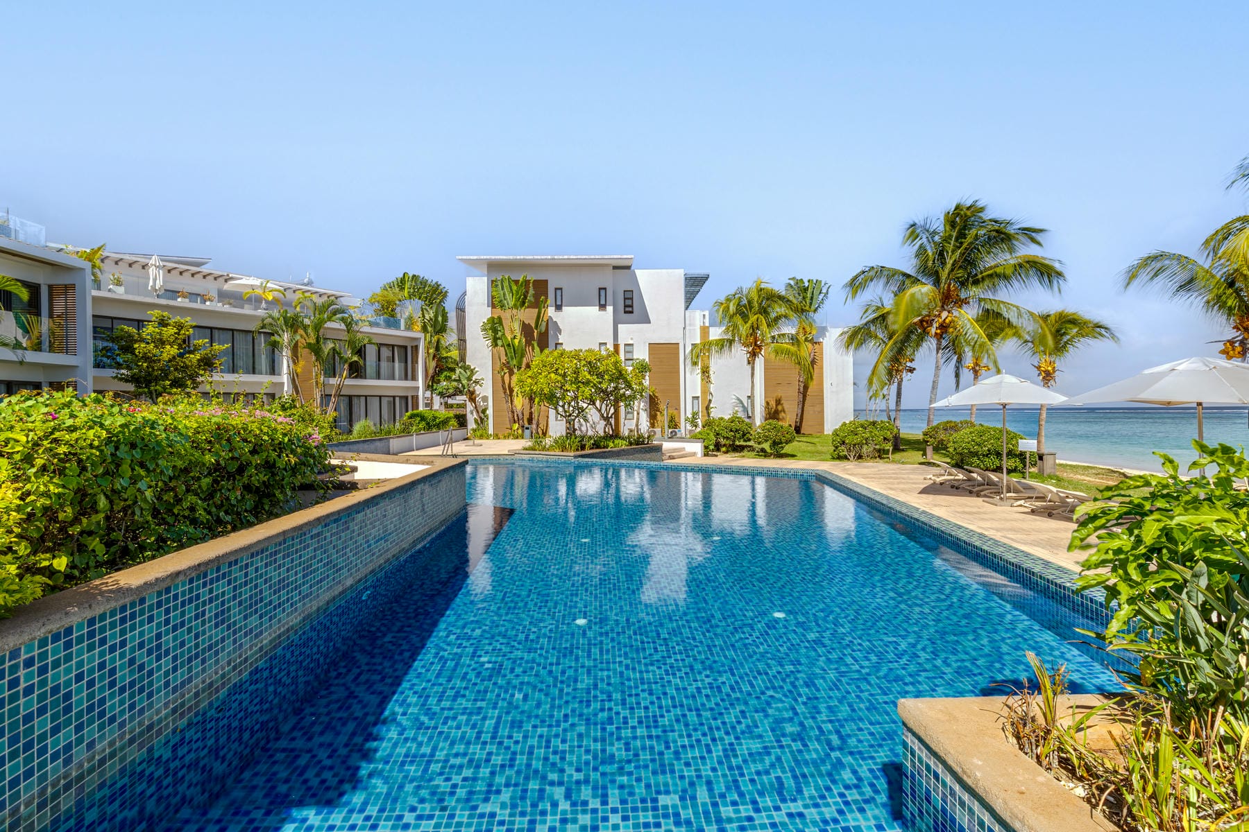 High-end beachfront apartments offer breathtaking views of the blue lagoon.