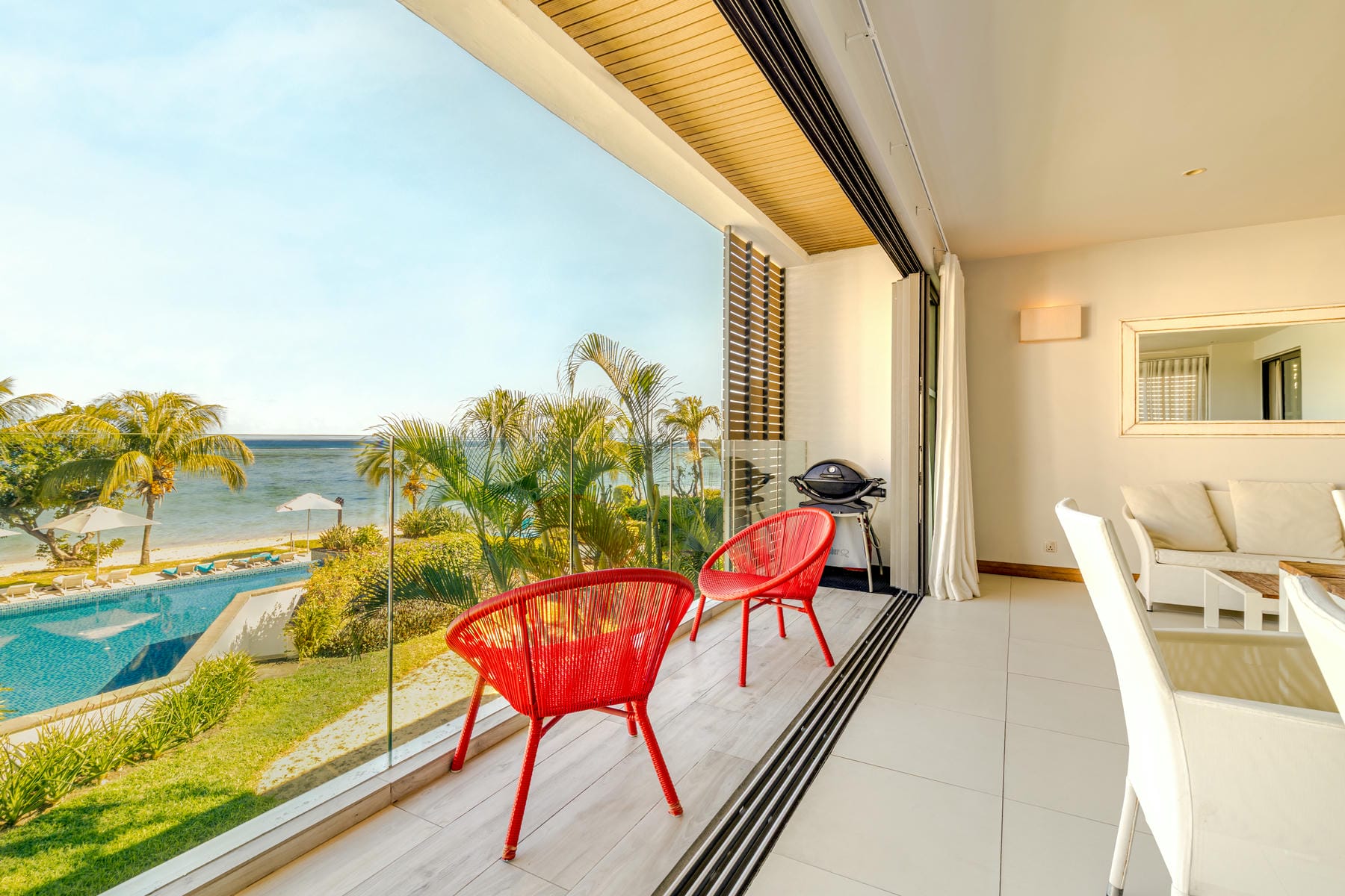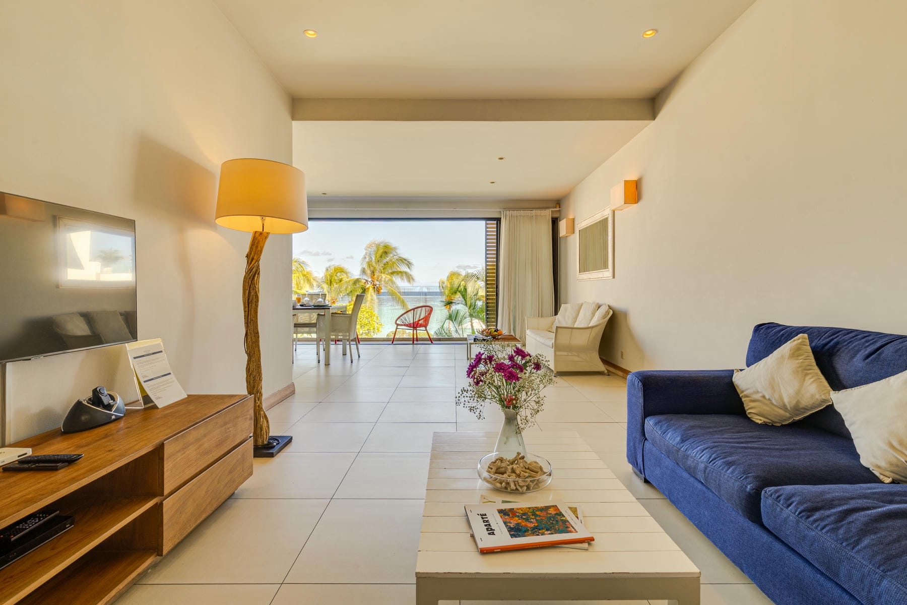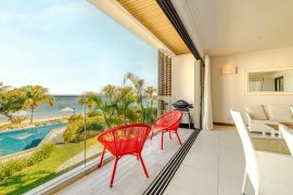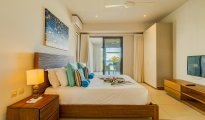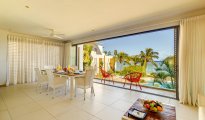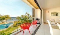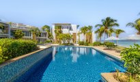 High-end beachfront apartments offer breathtaking views of the blue lagoon.