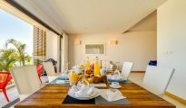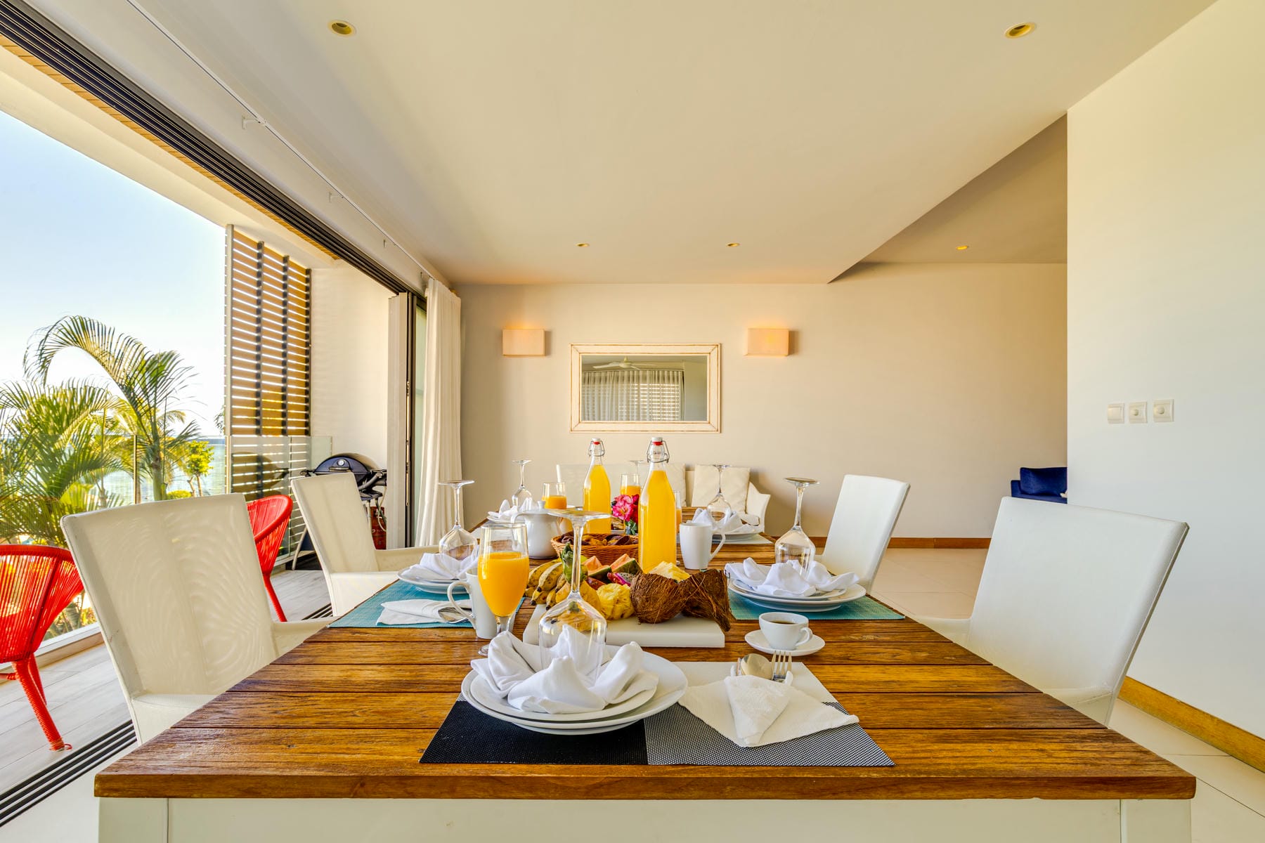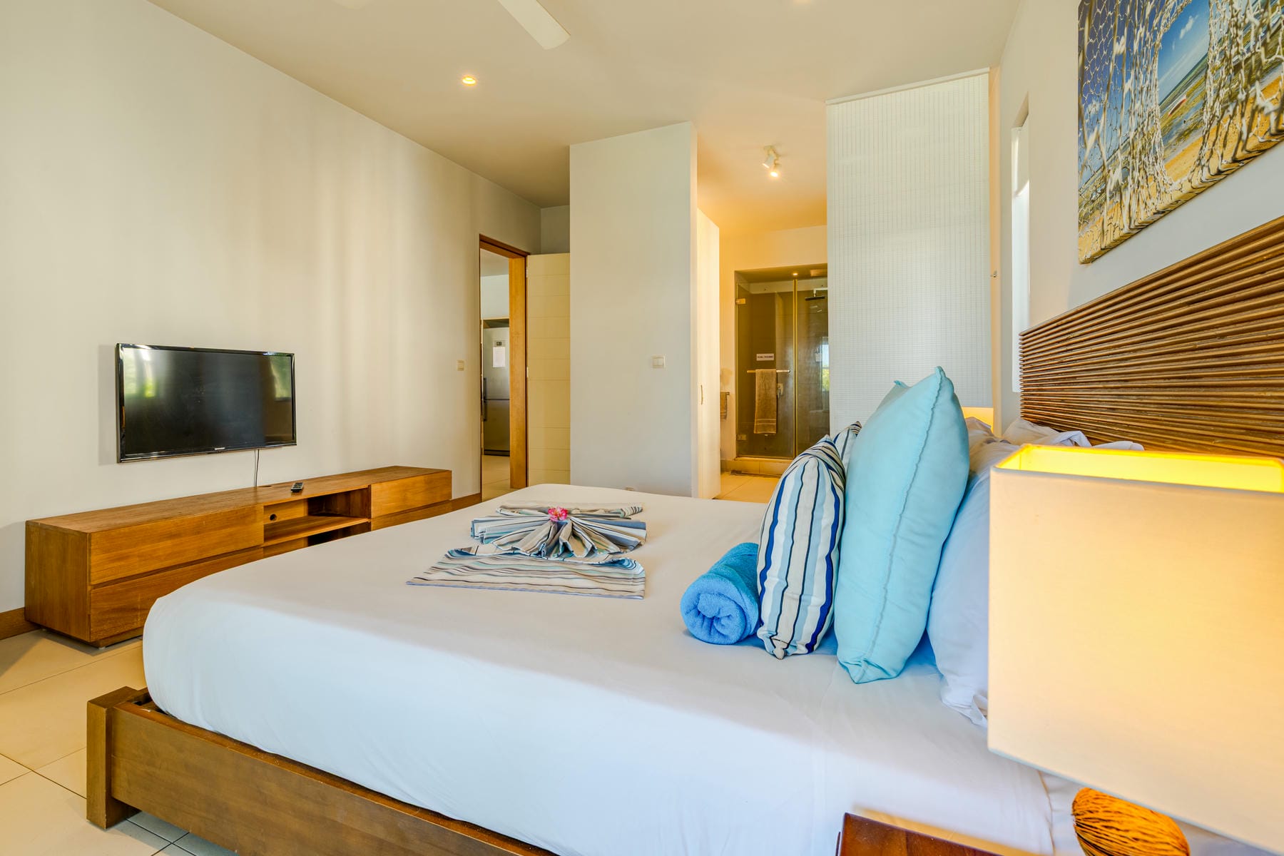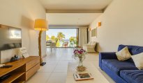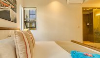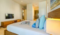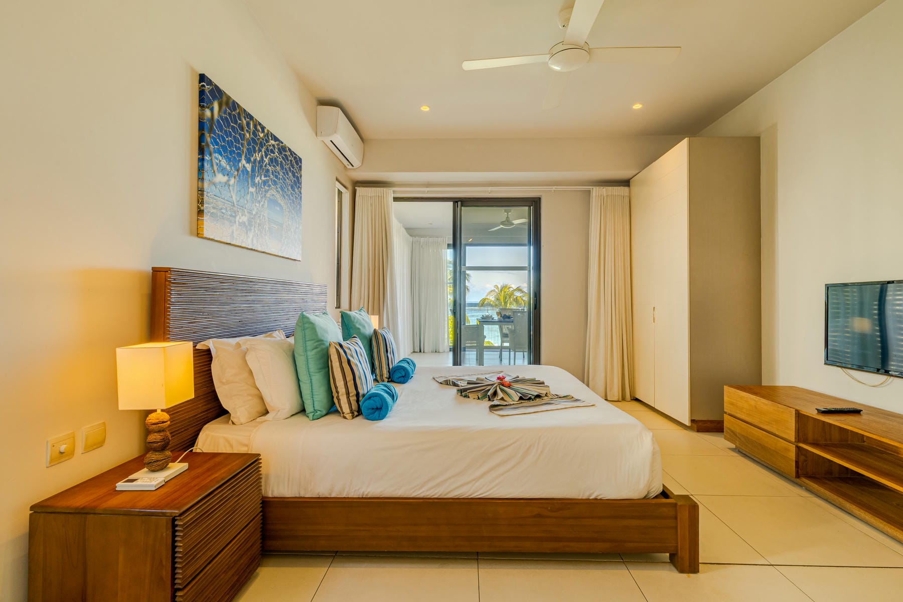 High-end beachfront apartments offer breathtaking views of the blue lagoon.