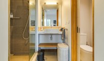 Bathroom Amenities: Shampoo, body lotion, shower gel, and soap, along with toilet paper and bin liners.