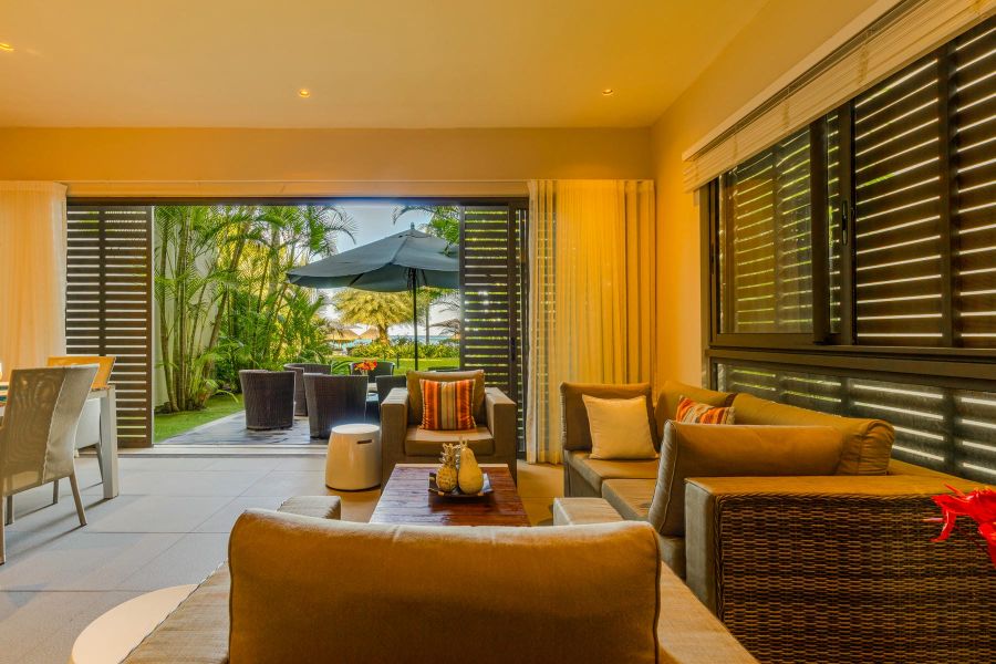 Located on the white sand beach of Tamarin, with panoramic views of the Le Morne Mountain and Indian Ocean, the Premium Apartments of Esplanade offer a splendid beach and garden views from the living room. The apartments are located on the ground floor and the first floor and consist of 3 bedrooms, an open plan kitchen and a bright living area. The units are air-conditioned and have wifi connectivity. There is a common swimming pool and sun loungers for your comfort. The neighbouring area is vibrant with local authentic shops and restaurants.